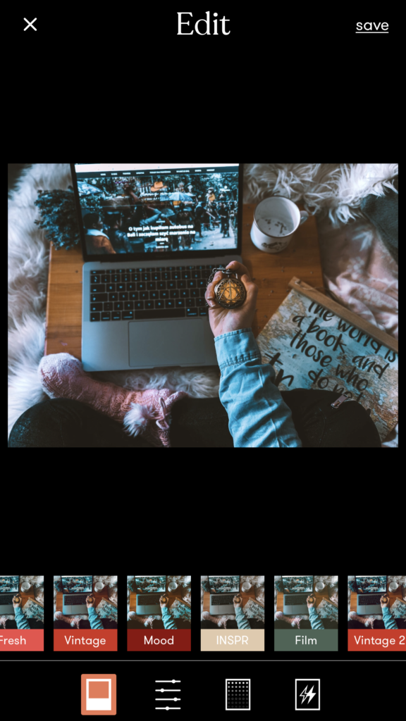 Afterlight udostępnia ponad 15 narzędzi do edycji zdjęcia, które pozwalają użytkownikowi aplikacji zmienić jasność, kontrast czy przezroczystość zdjęcia, a także dokonać wielu innych zmian. Program pozwala także na szybkie przerobienie wykonanego zdjęcia na tapetę w telefonie – odpowiednie przycięcie i dopasowanie. Moją ulubioną opcją są efekty świetlne oraz możliwość nakładania różnych kombinacji szumu i dusty na zdjęcia. To dość duża ingerencja w zdjęcie, więc uważajcie, żeby nie przesadzić. Polecam dla fanów vintage.