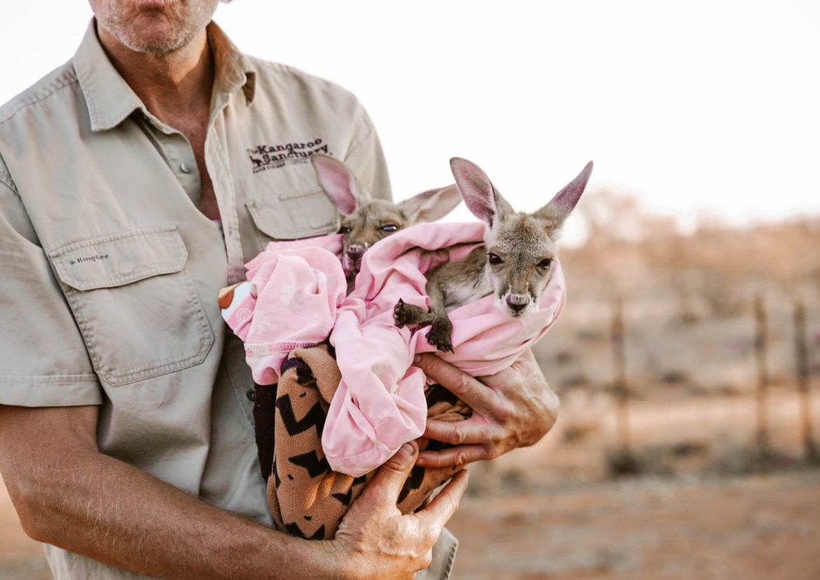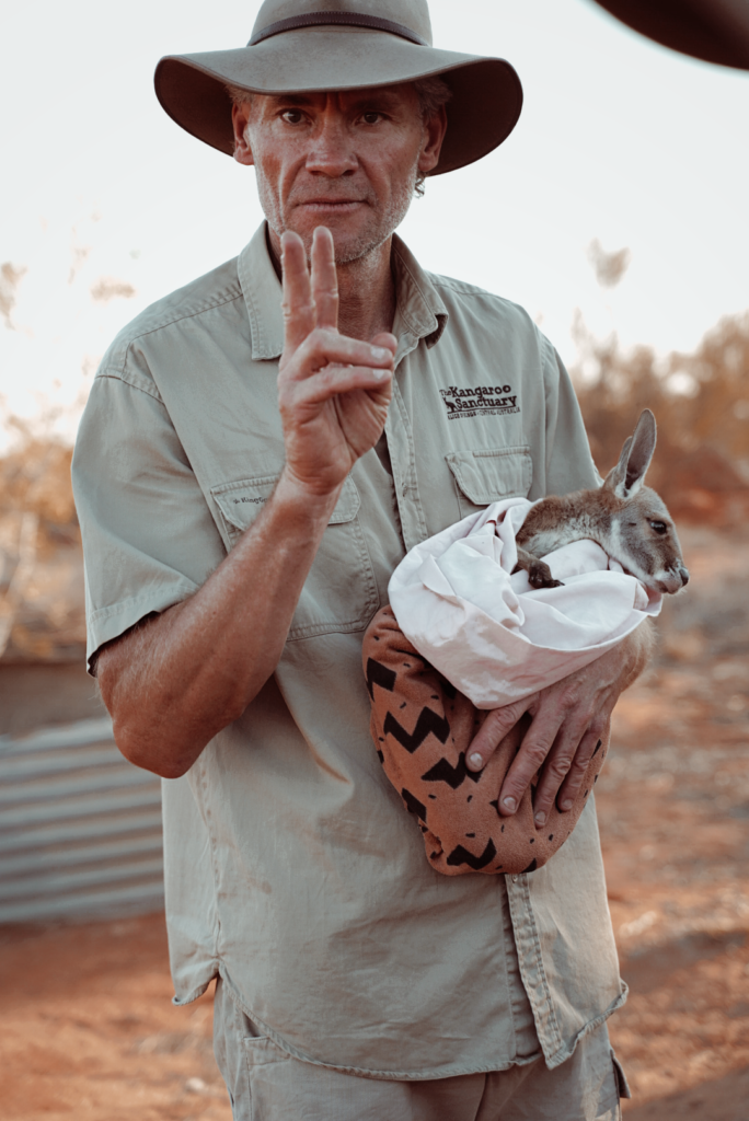 Alice Spring. Środek gorącego, australijskiego outbacku. Kto by pomyślał, że właśnie tu spełnią się moje marzenia z dzieciństwa, poznania swojego podróżniczego idola. Człowieka, na którego program czekałam każdego tygodnia. Ściągałam odcinki z internetu, bo ciężko było je uzyskać w Polsce (bycie wiejskim hakerem opłaciło się). Chris „Brolga” Barns, bo o nim mowa, zmienił moje życie … dosłownie. Brolga był przewodnikiem dla turystów w okolicach Uluru, i kiedy 10 lat temu zatrzymał się koło rozjechanego kangura, by sprawdzić, czy w jego torbie może jest żywy kangur ( zawsze to robimy, jeśli widzimy taki przypadek) jego życie przewróciło się do góry nogami. Za ciężko zarobione pieniądze, kupił 36 hektarów działki w Alice Spring ( czytaj busz i pustynia), na której otworzył Sanktuarium dla Kangurów! Jedno niewielu miejsc gdzie można zobaczyć kangury w Australii, nie w zoo !